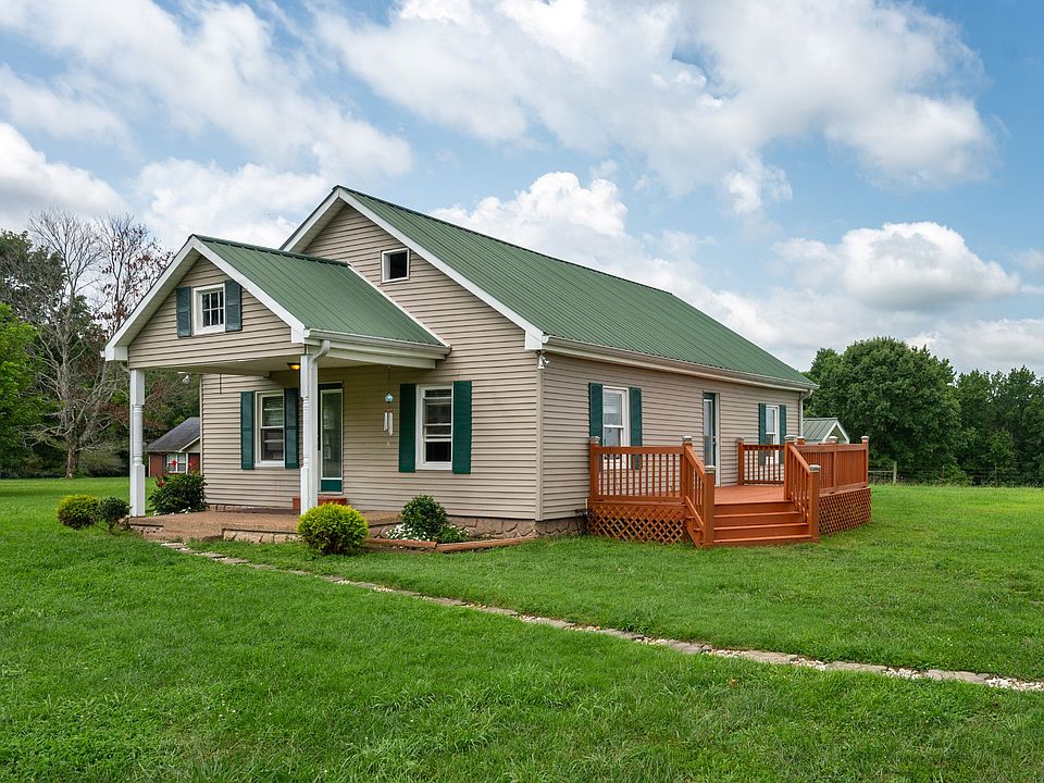 LOVELY RENOVATED HOME- AMAZING PRICE POINT!!! Classic 1940’s charm w/unique features like laundry chute & beautiful curved staircase! Stylish tongue & groove laminate flooring throughout main floor living spaces & kitchen/bathrooms featuring stone tile= low maintenance living. Upstairs bedroom w/ full bathroom creates ideal floor plan for families & roommates alike! Downstairs bathroom/laundry offers the ultimate in convenience. Designated office space, perfect work from home or flex space! Sits on a spacious 1-acre lot in quiet neighborhood w/ great views from newly stained deck! Love working on projects? Need extra storage? Huge detached workshop/garage (approx. 20x30) is the answer to both!