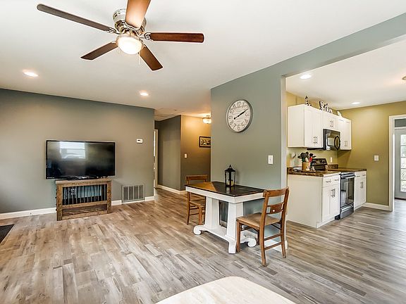 WELCOME TO THIS CHARMING RANCH IN PEACEFUL NEW HAVEN! This 4BR/2BA home has been completely rebuilt in the last 5 years from top to bottom and inside out! Inside you are welcomed by a spacious living room filled with bright natural light pouring in from the large new picture window in front. New vinyl plank flooring extends out into many areas of the home. The great open concept makes for easy entertaining. The kitchen boasts new real hardwood cabinets with a nice sleek white finish with hardware to match. They also have a soft close feature to them which any homeowner will appreciate. A new 6 shelf pantry has been added as well. The kitchen is open to the laundry room with new French doors leading out to the back patio area. There is brand new custom built cabinets and a custom butcher block counter to make laundry easier to fold. All 4 bedrooms are down the hall from the living room and are generously sized and all have new ceiling fans. You will notice a hall closet for extra storage and all of the solid wood Roman arch doors are sure to catch your eye. The master bedroom has a great walk-in closet and its own private ensuite bath. The bathroom has been gorgeously redone with a striking shiplap accent wall. Walk-in closets can be found in 2 more of the bedrooms and new lighting fixtures and canned lighting can be noticed throughout. The 2nd bathroom is just down the way and has been nicely completed with a large walk-in shower with stunning backsplash surrounding. New carpet can be found in all bedrooms and there are brand new windows throughout the entire home as well. Head out back and let the kids and pets play in the enormous backyard! Mature trees offer shade to protect you from all of the direct sunlight during the middle of the day. A large detached 2 car garage is out back and has been updated with a new roof, siding, and windows. This home had a new HVAC system installed in '14 and new roof in '15. New electrical throughout along with new drywall and ceilings are also among the list of updates. A new water heater was installed just last year! This home is totally a gem and anyone will be overjoyed to make it theirs today!