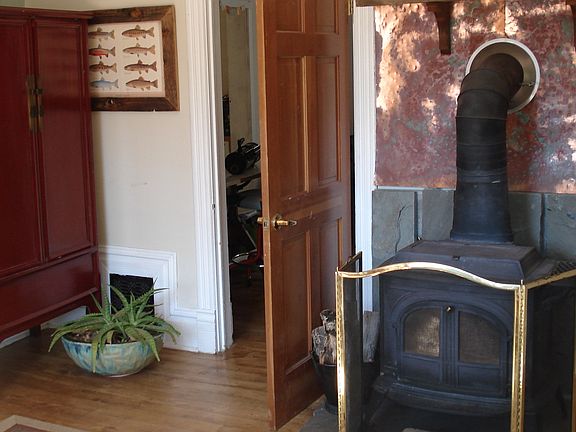 - Fireplace features: wood stove