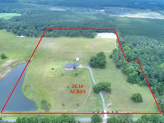 Welcome to this picturesque farmhouse retreat! Situated on a spacious 28.16-acre estate, this stunning property offers a perfect blend of natural beauty and modern comfort. Built in 2010, this farmhouse boasts exceptional craftsmanship and a serene environment that will make you feel right at home. The farmhouse features four bedrooms and 3.5 bathrooms, providing ample space for your family and guests. With nine-foot ceilings throughout, the interior exudes an open and airy ambiance. The thoughtfully designed layout includes an office, allowing you to work from the comfort of your own home. As you approach the farmhouse, you'll be greeted by charming exterior accent lighting, creating a warm and inviting atmosphere. The low maintenance brick and HardiePlank siding ensure durability and long-lasting appeal, making upkeep a breeze. The property features two 4-inch wells, offering a reliable water source for various needs. Step inside, and you'll find a beautifully appointed kitchen. Custom cabinetry provides ample storage, while the central island offers additional workspace and a gathering spot for family and friends. The kitchen also features granite countertops and double ovens, perfect for preparing delicious meals and hosting memorable gatherings. The primary bedroom is a tranquil retreat, complete with an ensuite bathroom. It boasts walk-in closets, a luxurious soaking tub, a separate shower, and dual vanities, ensuring both convenience and comfort. Additionally, the farmhouse includes three more well-appointed bedrooms and two additional bathrooms, accommodating everyone's needs. Indulge in the beauty of nature from the large screened porch and covered patio. Here, you can enjoy your morning coffee or unwind in the evenings while taking in breathtaking views of the property's beautiful sunrises and sunsets. The expansive 28.16-acre property is adorned with multiple pecan trees and offers a peaceful and serene setting, providing the perfect backdrop for relaxation and outdoor activities. Additional features of this remarkable property include a standby emergency generator for peace of mind, a wired shop for all your projects and hobbies, and a spacious laundry room to make household chores a breeze. This home comes equipped with a monitored security system, providing you with peace of mind and enhanced safety. Live camera feeds can be accessed through a dedicated mobile app, providing real-time updates and allowing you to remotely view the surroundings of your farmhouse. If you appreciate wildlife and the tranquility of rural living, this farmhouse is the ideal haven for you. Embrace the serenity and enjoy the abundance of wildlife that frequents the area. Don't miss out on this remarkable farmhouse on 28.16 acres with a pond. It offers a combination of modern comforts, natural beauty, and a peaceful atmosphere that is sure to captivate your heart. Schedule your private viewing today and make this exquisite property your own.
