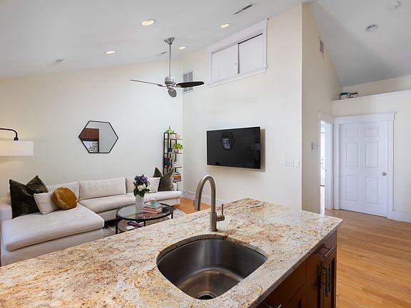 You're home in this chic, sun-filled penthouse house condo. Converted in 2008, this three-unit building is well located in the heart of City Point within steps of the South Boston beaches, the Broadway shops, and Castle Island...Across the threshold, this one-bedroom unit has a loft-like feel, with soaring cathedral ceilings. The working kitchen has granite countertops, stainless steel appliances, and cherry cabinets. Other amenities/details include a large bedroom with lots of closet space, an oversized jacuzzi bath, in-unit laundry, a storage unit, and a private deck perfect for entertaining on a nice summer day. This is a great entry-level unit!