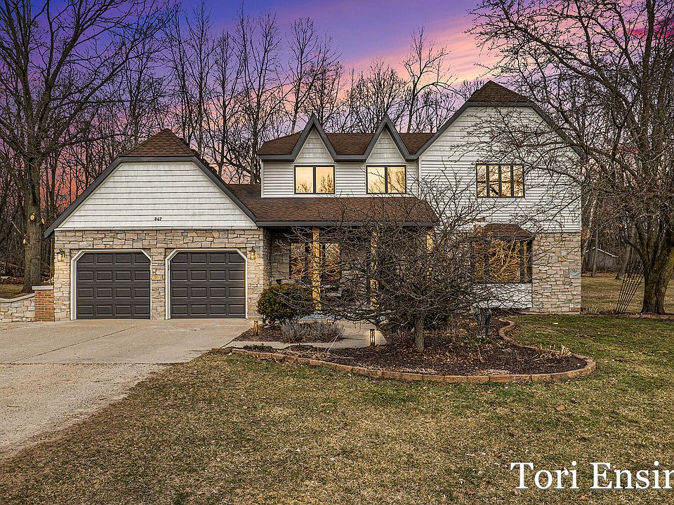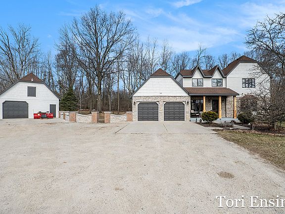 Stunning 2-story home in the City of Belding. Short commute to GR or Lansing. Main floor offers completely new kitchen, living room & office. Updated half bath and laundry leading to the 2-stall attached garage. Custom bar area great for entertaining. 3-seasons room overlooks wooded backyard. Upstairs has owners suite with attached full bathroom. 3 additional oversized bedrooms and another full bath finishes the upstairs. Basement is unfinished with lots of storage & potential. Outside has detached garage with loft. All on just under 4 acres. No detail has been overlooked on this one! Schedule your private showing today!