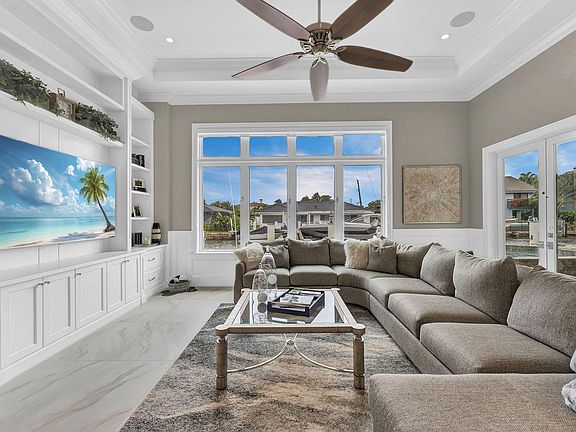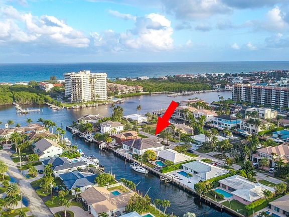 Experience luxury living in this rarely available custom turn-key waterfront home built by Boca Estate Builders. Located in East Boca Raton on a deepwater ocean access canal with no fixed bridges and 85 ft of prime dockage. This like new 3 bedroom, 4.5 bath home also includes a den that could be 4th bedroom. Elegant details include a chef's kitchen equipped with Thermador appliances, 12 ft high ceilings, wainscoting, crown moldings and more. Expansive kitchen island seamlessly connects with the open living and family rooms and dining area, all with amazing water views. Enjoy smart home technology, surround sound, impact glass, and generator. Outside includes heated pool and spa alongside a fully equipped summer kitchen providing the perfect retreat for relaxation or entertaining.