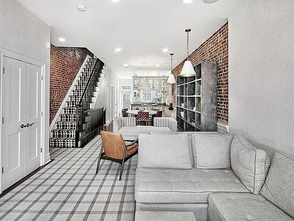 Few houses can compare with this fully renovated 4 floor brownstone located in the middle of Hoboken. Positioned far enough from the main street to be quiet while still being close to restaurants, transportation, and more, this home is unique in the Hoboken market. On the first floor: The kitchen contains Toledo Gellor furnishings throughout the kitchen, granite countertops, custom designer wallpaper, custom window treatments throughout the entire house, Serena and Lily lighting, Ballard light designs, built-in sound system throughout the house, and recessed lighting. Custom pantry, extra closet by the window, generously spaced coat closet, exposed bricks, redone stairs, and an alarm system throughout the house ready to be hooked. The outdoor deck and outdoor space contain blue slate, turf, grill included, automatic lighting, custom stoop and patio, and new drain. On the second floor: spacious linen closet, full ivy view of the back, huge modern master bedroom, custom wallpaper and paint throughout, master bedroom contains a full, large shower, jacuzzi, exposed brick, and huge walk-in closet. Stunning East and West views throughout the house provide lots of natural light. A second bedroom turned office space, generous closet space, and a custom built in shelf along entire wall rounds out the floor. On the third floor: Wake up with coffee in the morning on your own east facing balcony with view of the Freedom Tower Full bath with double sink, custom lighting, and wallpaper, new, large Samsung washer and dryer, sunroom, custom built-in closet space, roof access with massive, walk-in attic storage, spacious closet, children’s bedroom, new blinds throughout the house, playroom/loft with separate ladder (custom built-in ladder costs only $1,000 if you wish to build), and redone closets. In the basement: walkout to outdoor space, new carpet, very spacious, gas connection, speaker connections for entire house, gas line connection, huge closet, HVAC (original model), large full bathroom, office space, brand new 2022 boiler ($10,000), and door out to Garden Street. with winter storage below staircase, and Ring protection and alarm system. Central air 3 zones, 2 Wi-Fi systems with boosters along with Ethernet connections throughout all 4 floors for high-speed internet. Please call/text/email Tatiana at 917-797-7168/tatianawagner@hotmail.com
