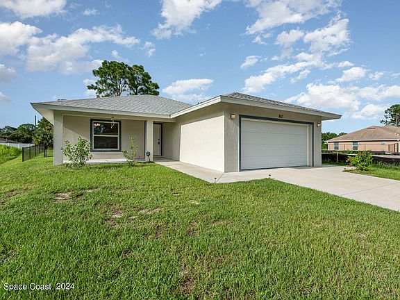 This custom designed home is only 4 years old, better than new and a must see! In a quite friendly neighborhood sits this concrete block home with front and back porch under truss. Inside is a beautifully updated kitchen with granite counters and a beverage cooler and wood look porcelain plank floors throughout the ENTIRE home. Beautifully updated bathrooms and vaulted ceilings. Custom built in electric fireplace, walk in pantry and a split floor plan. The home also boasts hurricane impact windows and garage door and fully fenced in back yard with black dipped chain link fence with 3, 4 foot gates and a pet wash station.