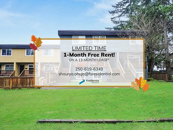 AboutValley View Terrace is a single-level townhome complex in Nanaimo, with two- and three-bedroom rental units. This 32-townhome community offers newly renovated units with stainless steel appliances, new cabinetry and beautifully upgraded kitchens and bathrooms. Valley View Terrace is located in close proximity to Vancouver Island University and is also conveniently situated on a bus route. The property also provides residents with quick and convenient access to all local amenities.E. & O.E. conditions apply. Promotions subject to change or be cancelled at any time without notice or penalty. Views, images, square footage, and virtual tours may be a representation of similar suites, finishes may vary. Please contact us for more information.