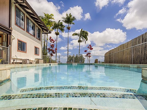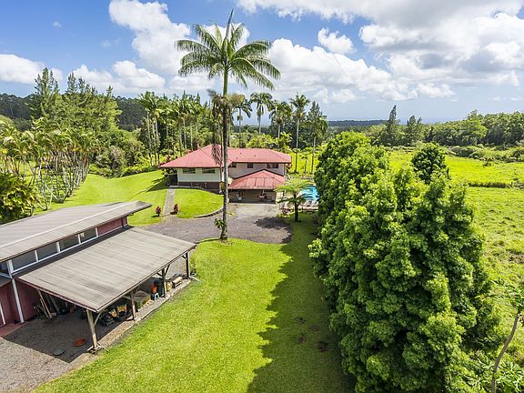 Looking for a Hilo home that offers great entertainment possibilities and extra space for family & fun? Come see this custom home on 3.2 fully fenced acres and bordering Waiakea Forest Preserve. Such a peaceful setting in cool Waiakea Uka, this property has everything you could want for a private country home with all the convenience of town. Located in a gated subdivision, this land is beautifully landscaped with fruit trees, ornamentals and specimen palms; there is even a green house for the gardening enthusiast! Attached to the green house is a separate storage building that functions as additional 1 bedroom cottage with full bath - Ideal for an art studio, hobbyist, or just extra storage space. The main home is a comfortable 3 bedrooms/ 3 bath with open beam ceilings, a wood burning fireplace and wrap around deck for enjoying the ocean view and surrounding pasture lands. The master bedroom also features attractive open beam ceiling, an ocean view and a large ensuite bathroom and closet. And just look at all the added square footage beyond the main house.... There is a 2 car garage with workshop area and a large covered carport as well. And perhaps the most special feature of the property is the heated, salt water pool that can be enjoyed year round!