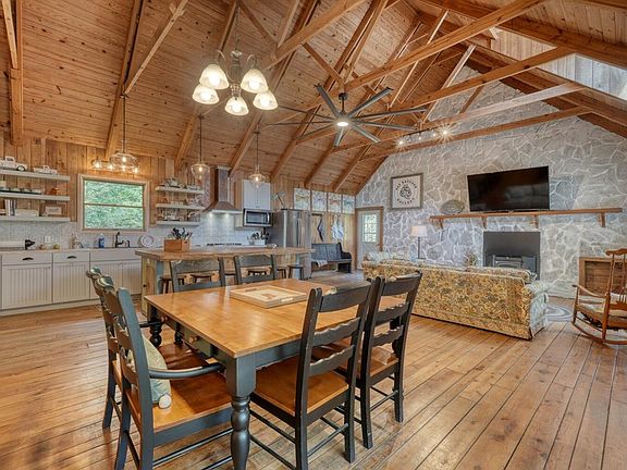 Dragonfly Cottage, where luxury living meets Hobby Farm lifestyle. Situated on 4.85 picturesque acres. This serene property features a pond, creek, two barns & a Quonset Hut. This is the perfect opportunity to connect with nature, spend time outdoors & the location to fulfill your agricultural dreams. Step inside this beautifully renovated home & you are greeted by an open floor plan, hardwood floors, & stunning German-smeared stone wall w/ a cozy wood-burning fireplace. The attention to detail is evident throughout, from the gourmet kitchen equipped with dual ovens, gas range, high-end appliances, soft-close cabinetry & farmhouse sink, beautiful lighting fixtures, to the grand Big Ass Fan for ultimate comfort. The thoughtful design carries through. Even the powder rooms evoke a sense of timeless charm, featuring a clawfoot tub, porcelain double vanity, stained glass window, & custom Victorian high pull chain toilet. The master suite is a true retreat with exposed beams, whitewashed wood, and a lavish master bath that includes a Aquapeutics shower system- jet propulsion, lighting, steam & a manual for all its many features. Main floor BRs offer direct access to porch/deck while the private loft BR includes its own full BA. Outside the expansive two-tiered porch is ideal for entertaining or simply soaking in the peaceful sights & sounds of country living. Recent updates to electrical, HVAC, NEW SEPTIC along with w/the generator, ensure peace of mind at this rural escape. The outbuildings are versatile- perfect for housing animals, storing equipment, or workshops. With no restrictions you have the freedom to make this land your own, whether that means raising chickens or having space for your hobbies. As a bonus, the seller is a professional landscape designer & would be available to work w/ you to bring your vision to life. This is not just a home but an opportunity to embrace a lifestyle. Schedule a tour today to experience all this property has to offer.