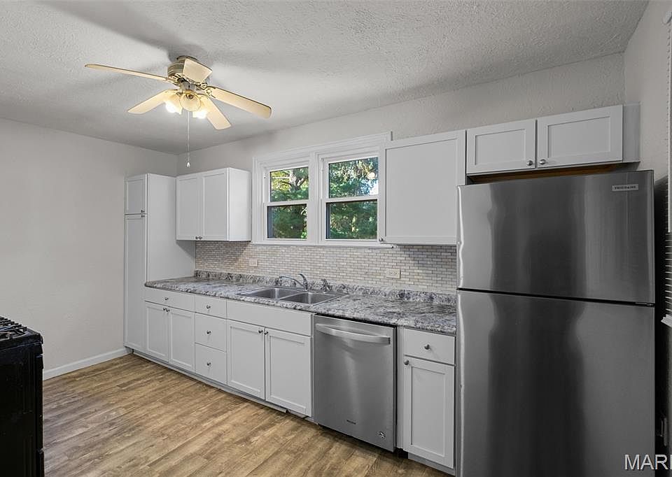 This stone and brick ranch sits on a generous corner lot in the heart of Ferguson, offering single-level living with the character buyers are looking to find—warm, timeless, and easy to live in. Inside, original hardwood floors, large picture windows, and a stone fireplace create a bright, inviting space that feels both classic and comfortable.
