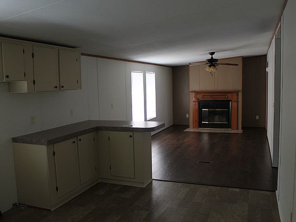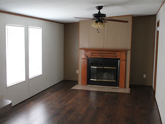2000 14x70 Pioneer Manufactured Home. New Hand Scraped Hickory laminate flooring. Stone entry way and fireplace hearth. New paint through out. Stove, fridge, dishwasher not pictured but included. New vinyl flooring in kitchen and bathrooms. 4 bedroom 2 bath. Beautifully remodeled home.