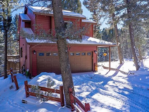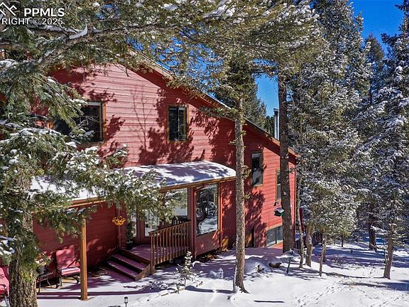 If the photos make you think, "Wow, this home is a gem!", walking in the doors will provide confirmation! Welcome home to your retreat in the woods where nature meets modern convenience. This beautifully maintained property on nearly 1-acre of land allows for privacy, yet you're close enough to neighbors, if you need something, you'll easily connect. It's the perfect balance. Walk in the main level to find a recently remodeled kitchen w/granite counters & a cozy yet open feel connecting the kitchen to the living & dining areas. The living room has its own wood-burning stove for when you want to be toasty warm watching the snow come down, & you'll fall in love w/the tongue and groove vaulted pine ceilings. In the summer, there is a window AC unit that is rarely needed. Off the dining, there are sliders to a large deck overlooking your gorgeous property w/mature trees to include an aspen grove. Upstairs, the primary ensuite is complete w/dual sinks. There are 2 more large bedrooms found on this level as well as an additional full bathroom for the kids or guests. The downstairs area has an opportunity to create a 4th bedroom, office or workout area. There is no lack of light in this gorgeous home & this includes the basement complete w/walk-out to the very large lower level deck. And don't forget the basement has radiant floor heat, while the entire home is heated by an efficient hot water boiler system. Sit on your patio furniture and take in all the sights and sounds of the forest to include birds of nearly every variety, deer, etc. Stroll down to the lake to go kayaking, fishing or paddleboarding. The scenery will knock your socks off to include views of America's mountain, Pikes Peak! Take in tons of hikes w/in the community or take a quick jaunt to nearby Mueller State Park. If you enjoy the outdoors, peace and quiet, and modern amenities, you won't want to let this one get away!
