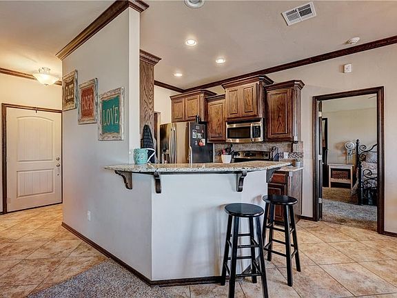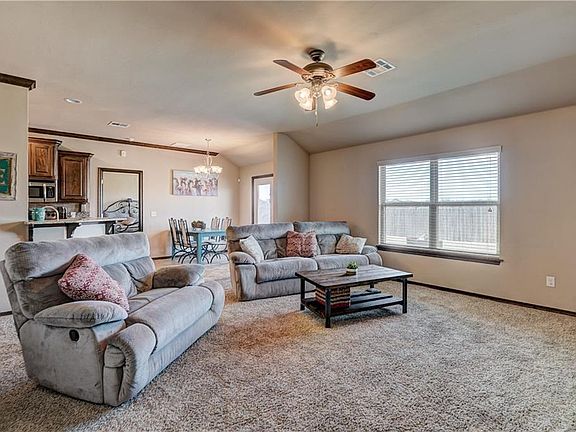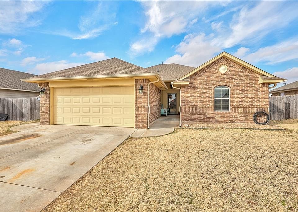 GREAT ONE OWNER HOME WITH OPEN FLOORPLAN AND MOVE IN READY! THE KITCHEN HAS GRANITE COUNTERTOPS, BEAUTIFUL CABINETRY, SS APPLIANCES, PANTRY, BREAKFAST BAR & DINING AREA WITH ACCESS TO PATIO AREA. SEPARATE MASTER AREA WITH MASTER BATH HAS DOUBLE SINKS AND LARGE WALKIN CLOSET. HOME HAS INSIDE UTILITY ROOM, BLINDS THROUGHOUT, FULL SPRINKLER SYSTEM, GUTTERING AROUND ENTIRE HOME AND LARGE FENCED BACK YARD THAT BACKS UP TO THE PLAZA TOWERS ELEMENTARY SCHOOL. JUST OPEN BACK GATE AND WALK ONTO SCHOOL GROUNDS. GREAT SHOPPING, RESTAURANTS, ENTERTAINMENT, AND INTERSTATES 35 & 44. THE NEIGHBORHOOD HAS TWO PARKS, TWO FISHING PONDS, AND A SPLASH PAD ALL WITHIN WALKING DISTANCE.