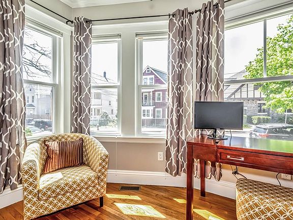 Come for the beautifully renovated abundant space, but stay for the community, the dining and the wonders of the Arboretum. The first floor unit in this well built Philadelphia style two family has been completely done. A large foyer with French doors to a home office are an unexpected treat. Classic choices in the kitchen with plentiful custom cabinetry, granite and stainless work seamlessly with the original wood floors. The first floor bedroom is adjacent to the stylish full bath with tub, while the master suite with walk-in closet sits privately on the second. Tuck your car away in the one car garage space and walk to Green T coffee shop, Birch Street Bistro and the commuter rail. Stop in during Lilac Sunday at the Arboretum and get a taste of the good life in Rozzie square.
