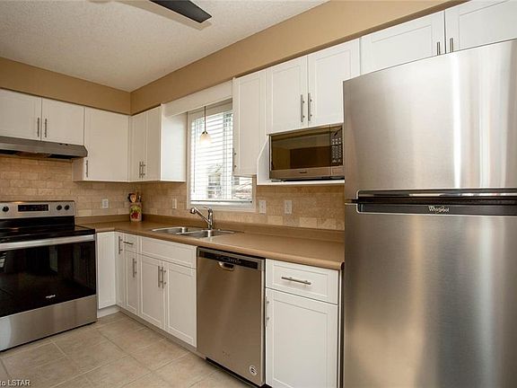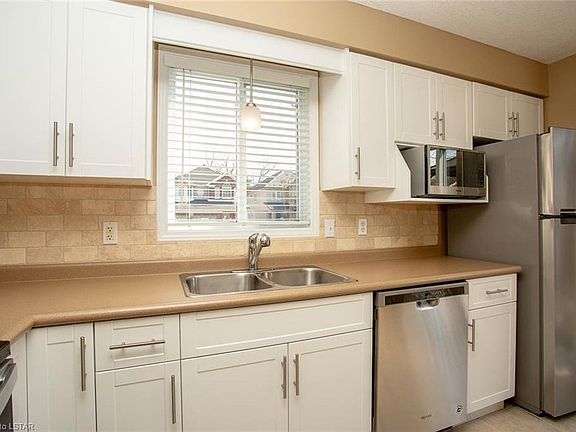 Located in sought after family friendly "Stoneycreek" in North London. Built by Fusion Homes this impeccable Three Bedroom Two Storey with an Attached Garage is in exceptional condition throughout and offers lots of quality updates - Roof 2020, Furnace and Central Air 2020. A comfortable Great Room overlooks the private treed yard with deck and garden shed! Kitchen with Stone Backsplash has refaced Cabinets and all new Stainless Appliances in 2020 has access to 16 x 12 deck with Hard Top Gazebo included! Second Level offers an open loft/nook (ideal office area), the Master Bedroom has a walk in closet, two other Bedrooms plus the main Bath. Bright well finished Lower Level with a Family Room, Pot Lights, 3 pc Bath, Separate Laundry Room with Stacked Washer/Dryer included. Shelving in basement is included. Retractable Screen Door at Front Entrance. This pristine home is a pleasure to show with nothing to do but move in and enjoy!!