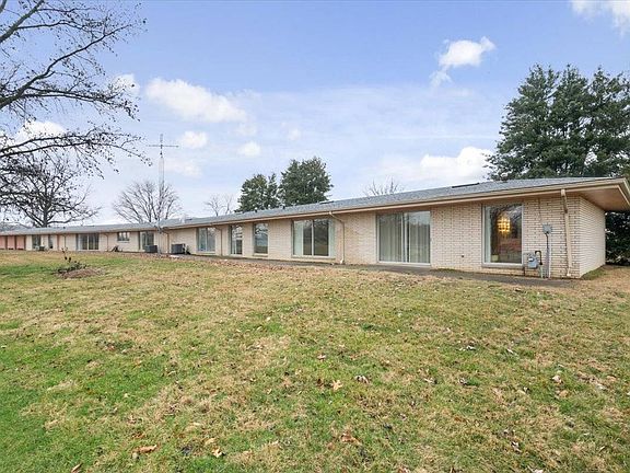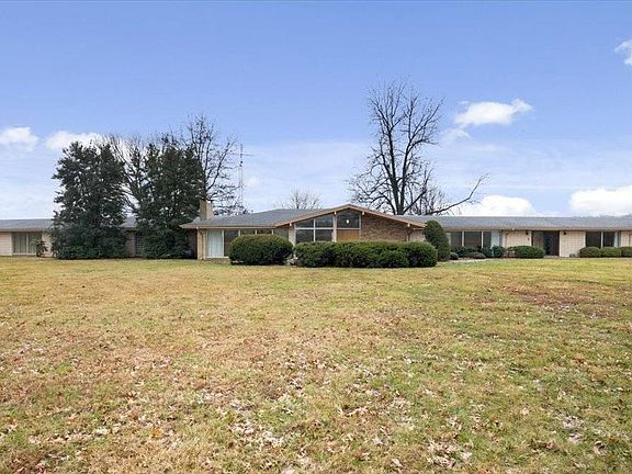 This one owner mid century modern home was decorated with the finest materials. Amazing views in every room with floor to ceiling windows and sliding glass doors. Home is located on 37.5 acres just outside of Carmi. The shared stocked lake gives access to avid fisher in the family. This unique property has an unbelievable amount of space. Two vast living spaces provide more than enough area for all kinds of families. The main living space has a stone fireplace complete with a gas insert. Huge eat in kitchen is perfectly located in the center of the home. Four bedrooms, three full baths, one half bath, laundry room, multiple walk in closets, and formal dining room create the floor plan for this one of a kind property. Also included in this parcel is a horse barn with stables. Additional brick storage building provides even more space for all the necessities.