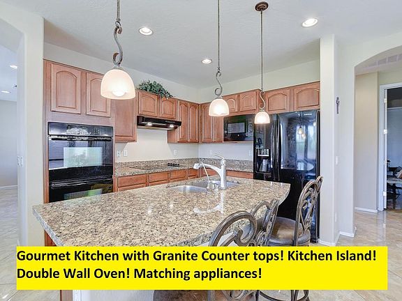 - Kitchen Features: Kitchen Island, Pantry, Granite Countertops, Wall Oven(s), Cook Top Elec, Multiple Ovens
