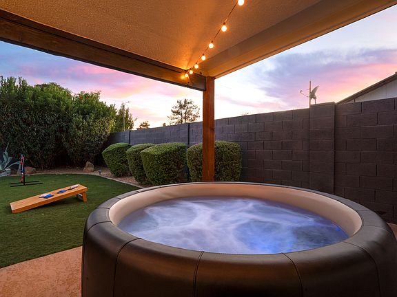 FULLY FURNISHED HOME SHORT TERM ONLY (3-9 months) Have fun w/ the whole family at this stylish home, fully remodeled & designed to embrace the southwest desert landscape. Large backyard w/ covered patio & all the amenities needed including a pool, hot tub, fire pit, outdoor lounge & dining area w/ fun swinging egg chairs. 20 minutes to PHX airport. 20 minutes to DT Scottsdale. 10 minutes to DT Gilbert, Chandler, & Tempe. This location is as central as you can get! World-class hiking, mtn biking, boating & floating 10-30 mins from the house. Here's the summer home you've been looking for! LIVING ROOM Oversized sofa with pillows & beautiful desert themed artwork 75 inch smart TV w/ Sonos sound bar & surround sound Cozy reading nook w/ lighting Coffee table High speed internet ENTRY WAY Spacious entryway Entry credenza filled with board games & puzzles KITCHEN & DINING Large island w/ lots of bar seating 8 person West Elm dining table perfect for family meals Large walk-in pantry w/ microwave Coffee bar w/ Keurig & brewed coffee machine. Pods, coffee beans, sugar, creamers, and tea provided Oven/Stove Fridge/freezer Dishwasher Sink w/ reverse osmosis filtration system for clean drinking water Bar cart with all the essentials for making mixed drinks cups, wine glasses, outdoor glasses, & coffee mugs plates, bowls, & silverware mixing bowls, serving bowls/plates, & serving utensils pots & pans Sip wine and enjoy light snacks as you relax by the fireplace or swing in the cozy egg chairs. Then, gather around the indoor or outdoor dining table to savor a delicious meal with your loved ones. BEDROOMS Primary bedroom: King-sized bed Hanging basket pendant lights Ceiling fan Ensuite bathroom w/ double vanity & glass surrounded walk-in shower Walk-in closet Sliding door access to backyard Dedicated desk to work from home Guest Bedroom 1 (orange room): Queen-sized bed Ceiling fan Dresser & Closet Pack & Play Guest Bedroom 2 (green room): Queen-sized bed Ceiling fan Dresser & Closet Guest Bedroom 3 (arched green room): 2 twin-sized beds Ceiling fan Closet w/ built-in shelves Each bedroom is thoughtfully designed with desert-inspired decor, beautiful artwork, and plush, comfortable mattresses creating the perfect retreat for a restful night's sleep. These spaces are crafted to offer you a serene and stylish place to unwind and recharge. BATHROOMS Primary Ensuite bathroom w/ glass surrounded walk-in shower & double vanity Guest bathroom w/ stand up shower/ bath combo Our newly renovated bathrooms offer a luxurious experience with modern showers, sleek sinks, and comfortable toilets. We provide fresh towels along with complimentary shampoo, conditioner, body wash, and lotion everything you need for a relaxing and refreshing stay. BACKYARD Large pool 6 person hot tub 8 person outdoor dining table Outdoor lounge area 2 chaise lounge chairs Fire pit area w/ 5 lounge chairs 2 egg swinging chairs Outdoor yard games including corn hole Fully turfed and desert designed landscape Our backyard is the ultimate space for fun, perfect for entertaining or unwinding under the stars. Dive into the pool, soak in the hot tub, or gather around the fire pit as you sip wine by its cozy glow. Enjoy meals in the spacious outdoor dining area, lounge on comfortable seating, or swing in the charming egg chairs. With ambient nighttime lights and yard games for the whole family, it's a welcoming oasis for unforgettable moments together. rent: $4,500 (w/o utilities) or $5,000 (utilities) non smoking home. AVAILABLE 6/1/25 30/60/90+ day lease available depending on the need. Fully furnished with everything you need to cook. No smoking in home or on property. No parties. Dogs/Cats ok- $150 cleaning fee per pet Cleaning Fee $250 Security deposit - $1,500 Rent is due upon moving into home: venmo / zelle / cashapp/ cashiers check. no personal checks. monthly payments options: Rent only $4,500 or Rent + Utilities $5,000 (waste, sewer, garbage, solar, water, cox cable) open for discussion as utilities range from $400-600 GARAGE with room to park 2 vehicles. We do not list our homes on craigslist or anywhere else! This is our only listing. If you have any additional questions, please email us immediately. BEWARE OF SCAMMERS.