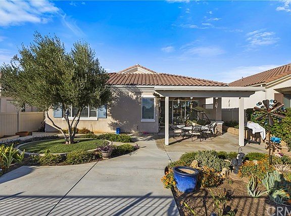 An absolutely beautiful and highly upgraded Trillion model with AMAZING VIEWS located in the guard gated 55+ community of Solera at Oak Valley Greens. Attention to detail at every corner has taken place in this home. The upgrades include new granite kitchen counter tops with a "waterfall" edge to the floor, Refinished cabinets with new hardware, large added storage cabinet has been added, new faucet and sink, newer dishwasher, and new LED light. In the laundry room new granite counter top and granite composite sink with new faucet have been added. Laminate floors throughout the family room and custom drapes. A rain glass window has been installed over the master bath tub for privacy and extra storage has been added. The oversized and low maintenance back yard offers forever views over looking the greenbelt and include an extra patio cover for plenty of shade, lots of concrete and a gorgeous "fruitless" olive tree as the center piece tie this backyard together. The community offers one of the best gyms in any 55+ community with an indoor walking/jogging track, billiards, game room, crafts, clubs, tennis, bocce ball courts and so much more. This is a home and community that you must see.