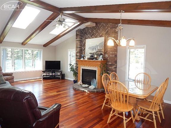 Complete serenity with this secluded, private setting tucked back in a nature wonderland! Well maintained 4 bedroom home with newer roof, furnace and A/C. Dramatic great room with skylights, gas fireplace and gorgeous hardwood floors. Kitchen boasts granite with newer appliances. 1st floor laundry (additional laundry hook up in basement), finished basement. All surrounded by beautiful 6.2 acres of grounds with spacious deck with gazebo, hot tub and fenced in-ground pool. Includes guest home with an additional 800 square feet, completely equipped with living room, kitchen (fully applianced), bath, laundry (washer and dryer included), two bedrooms and two car garage.
