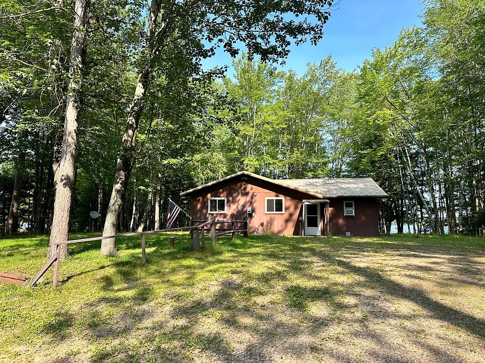 Kathan Lake - 3 bedroom, 1 bath cabin with 142 feet of frontage. There is a brick wood burning fireplace, large living room, kitchen & dining area, along with a large detached 2.5 garage with additional storage. The property boasts 2.79 acres of wooded land as well as great privacy on Kathan Lake; a 189 acre lake well known for fabulous fishing. The area is packed full of recreation to include but not limited to snowmobiling, ATVing, hiking and biking. This year-round cabin comes partially furnished and would be a perfect vacation getaway in the beautiful Northwoods.