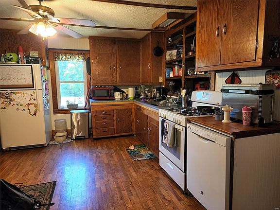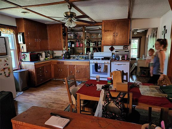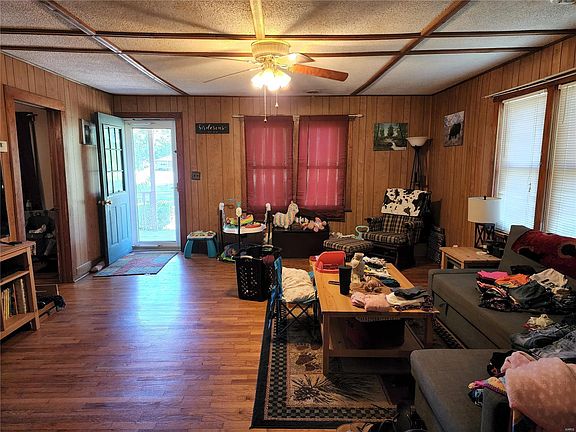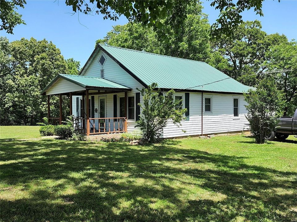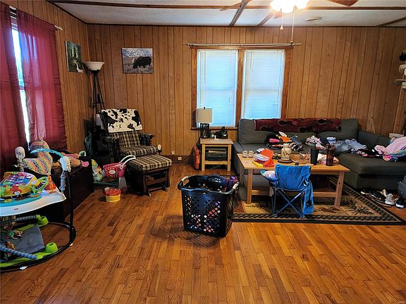 Two homes on 5.96 acres m/l, in the country, large yard, main home features hardwood floors, 3 Br, 1.2 Ba, jack n jill bath, country kitchen with some appliances, pantry, large laundry room/mudroom, newer vinyl tilt windows, metal roof, covered front porch as well as covered back deck/porch, massive shade trees, 2nd home is mobile home, 2 Br, 2Ba, sits on full basement, full length covered front porch, make nice rental income, circle drive, paved frontage, some fencing, short drive to Piney River access, Ft. Wood.