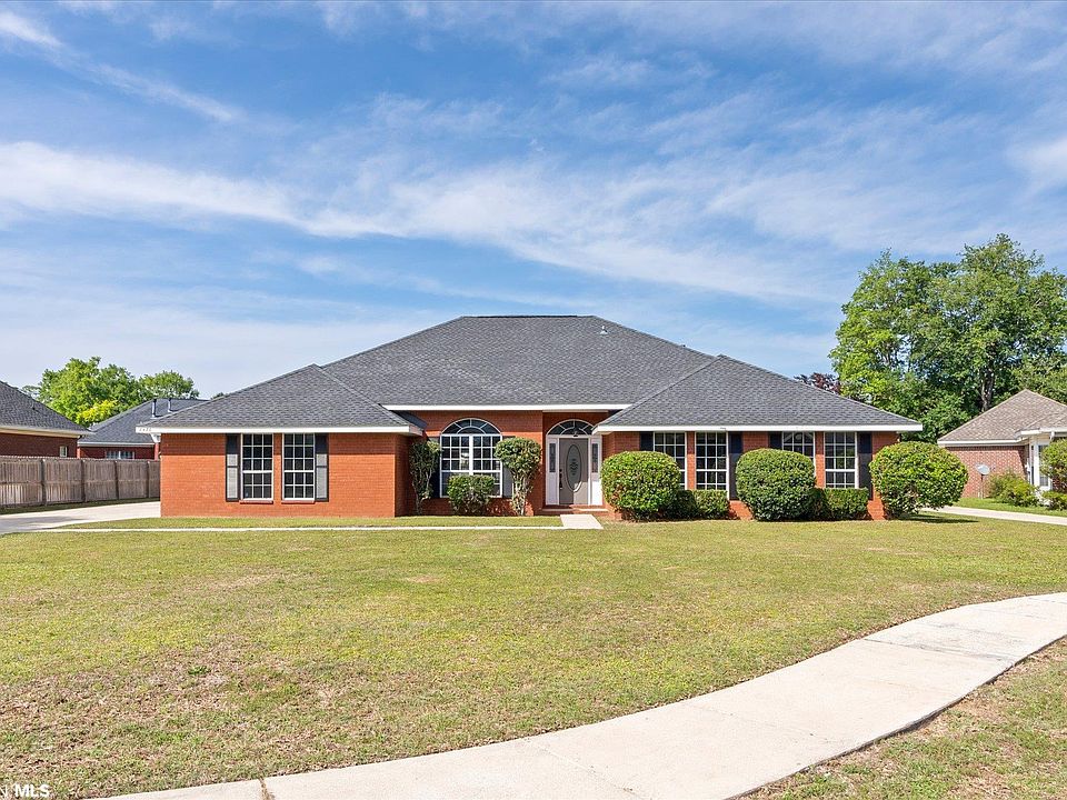 This updated home will put you in one of the most convenient locations in West Mobile. The very best schools, great dining and shopping all located within minutes. Gorgeous inside and out, on a quiet cul-de-sac lot nestled in a highly desirable neighborhood. Beautiful kitchen with granite counters and plenty of space. Luxury Vinyl Plank floors throughout the living areas and kitchen, ceramic tile in the laundry/mud room and bathrooms, and brand new carpet in the bedrooms. Massive 4 bedroom, 3 bathroom Open Floor Plan. The large foyer opens to the great room and dining room combo that are separated by columns and have vaulted ceilings. A bonus/dining room is off the kitchen and has French doors opening to the family room. Primary suite has dual walk-in closets, separate shower, and garden tub. The other three bedrooms are nice size with lots of closet space and easy access to the 2 additional full bathrooms. Double side entry garage and a nice sized yard. This home is super clean and truly embodies everything you need for your lifestyle! Don't just live your life, love it!