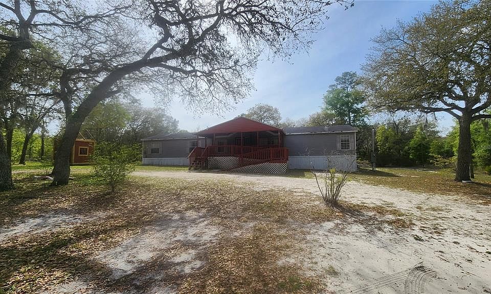 Welcome to your private oasis on over four acres of picturesque land! This enchanting 5-bedroom, 3-bathroom mobile home not only offers spacious living but also boasts delightful outdoor amenities, including an above-ground pool, spacious deck, and charming front porch. Step inside to discover a bright and airy living area, perfect for hosting gatherings or simply relaxing with loved ones. The well-equipped kitchen features modern appliances and a convenient dining area, making mealtime a joy. Retreat to the generously-sized bedrooms, each offering comfort and tranquility, with plush carpeting and ample closet space. The master suite is a true retreat, complete with a private en-suite bathroom featuring a luxurious soaking tub. Outside, the fun continues with an inviting above-ground pool, ideal for cooling off on hot summer days. Lounge on the spacious deck, perfect for barbecues and outdoor entertaining, or unwind on the charming front porch and soak in the serene surroundings. Set on over four acres of land, there's plenty of room for gardening, recreation, and enjoying the great outdoors. Conveniently located in the outskirt of Bronson and only minutes from Archer and Gainesville, Florida, this property offers the perfect blend of privacy and convenience. Don't miss your chance to experience the ultimate in country living - schedule a showing today and make this your own slice of paradise!
