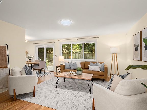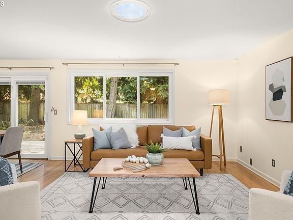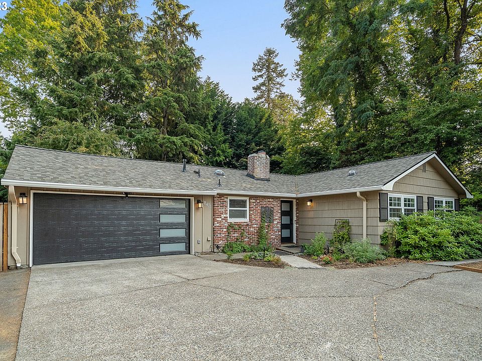 Beautifully remodeled one-level ranch on an incredible expansive, private, fenced lot. Conveniently located near great schools, Nike, Intel, shopping & dining, and more! Beautiful tile just inside the new front door flows into stunning, newly refinished hardwood floors. Freshly painted interiors throughout. Living space includes built-ins in dining space and a beautiful stone-surrounded gas fireplace. Updated kitchen features built-in, adjustable shelving, stainless steel appliances, maple cabinets, and tile flooring. Other features include a new sliding glass door with built-in shades, double-layer windows in front for privacy & noise reduction, closets with custom built-ins, hard-wired security camera, Italian bathroom floor tile, and six added skylights throughout. Large driveway in front with extra parking space and greenspace to the West with added privacy. Spacious, attached 2-car garage fit with new garage door & motor, plus updated electrical, ready for EV charging! Right around the corner from a public transit stop and just over a mile from Sunset Transit Center.