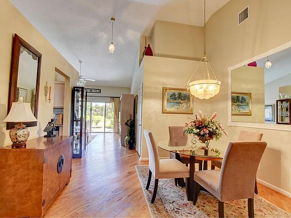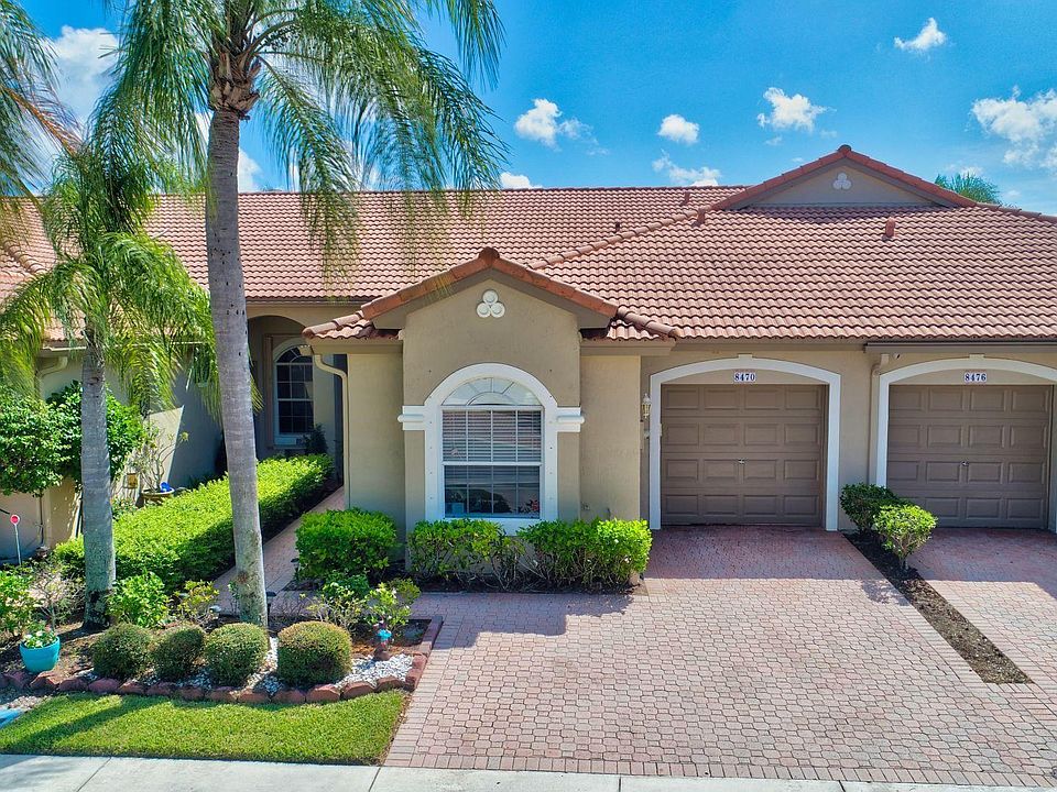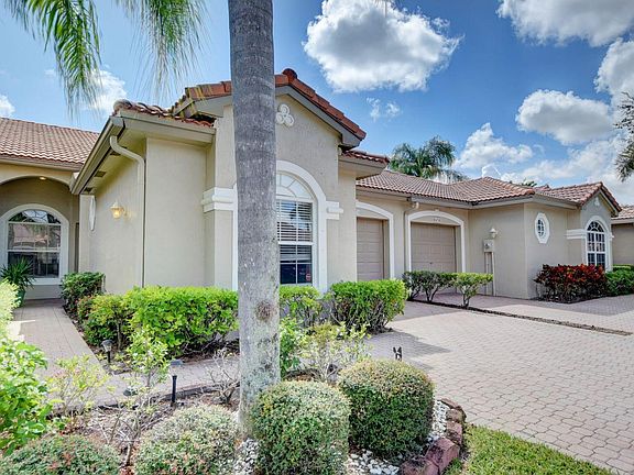 BEAUTIFUL LAKE VIEW!! PRICE REDUCED! Immaculate, very well maintained 2/2 villa overlooking a large lake. Oak wood flooring in living area. High ceilings in living area. Updated eat-in kitchen with granite counters, SS appliances, large pantry and room for a table and chairs. The large master bedroom has vaulted ceiling, large walk-in closets and beautifully updated master bathroom. Separate laundry and storage room. The dryer is 1 year old. A/C is 2009, W/H 2013. Large, deep screened in patio facing a beautiful lake. Mizner Pointe has a beautiful clubhouse (recently renovated), pool, fitness room, tennis, playground. Pets are allowed but no pitt bull breeds. Can rent immediately!