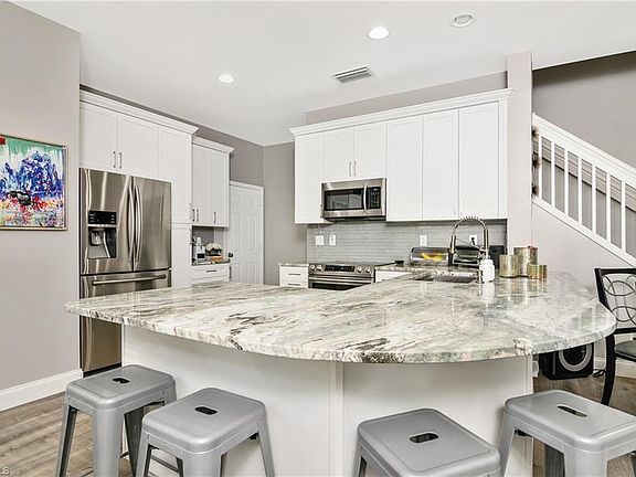 Move right into this newly updated townhome in the quiet gated community of Lakewood Village. This 3 bedroom, 2.5 bath end-unit residence offers lots of natural light and features a two-car garage. Enjoy beautiful views overlooking the preserve from the great room and screened lanai. Upgraded with luxury vinyl plank flooring, granite countertops, new kitchen appliances and interior painting. The upper level features a large master suite and 2 other spacious bedrooms with 2 bathrooms. Close to shopping, dining and entertainment, this centrally-located community is a short car ride to Southwest Regional International Airport, Lakes Park, Ft. Myers Beach, and Sanibel/Captiva. Don't miss out on this opportunity to live the good life!