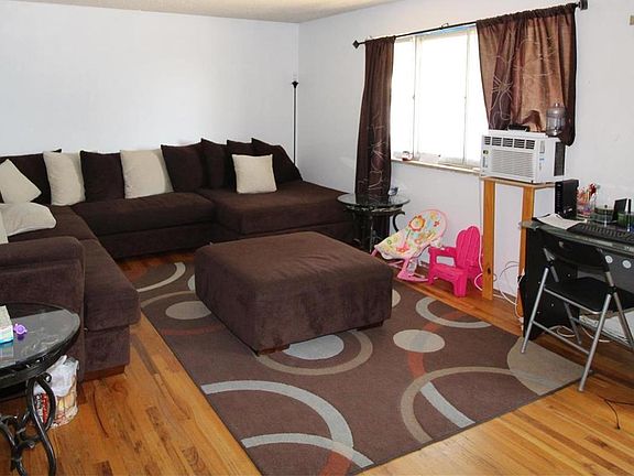 Great potential with this brick ranch style home. Large living room, oak hardwood floors in living room, dining room, and main floor bedrooms. Updated full bath on main level. Full basement with large family room, play room, 3rd bedroom, and storage room. 2 car attached garage. Large yard with downtown city views. Close to public transit and neighborhood school. Home does need a lot of updating and is priced accordingly. Sold in "as is" condition.