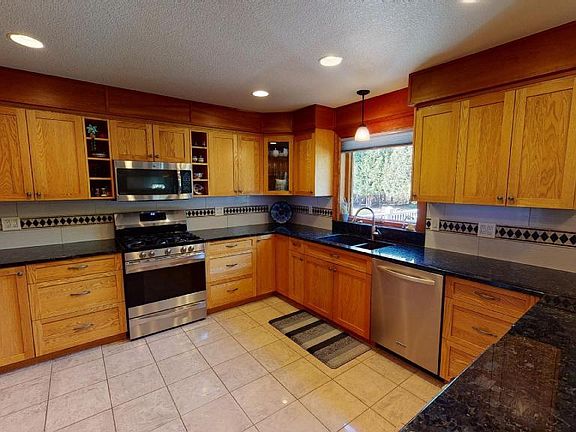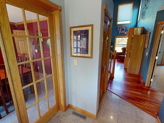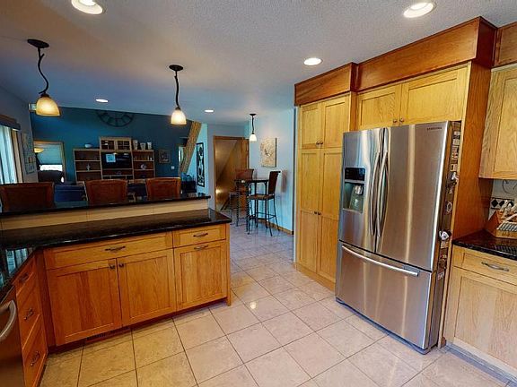 The great entertainer! Nice private lot with beautifully landscaped grounds including auto sprinklers, paved stone patio and fire pit area, maintenance free decking off master and main house. Nicely finished triple car attached garage with heat and central vac. Extra storage in the recently added pole shed, perfect for toys and yard equipment. This custom built home has all of the upgrades; granite counters, tile and wood flooring, stainless steel appliances, gas fireplace, security system, in floor heat, forced air. The 40x20 family room offers extra high ceilings with tin accents in bar area. Custom bar with water, dishwasher, wine cooler and refrigerator makes for easy entertaining and cleanup. Pride in ownership shows in this well maintained and upgraded home.
