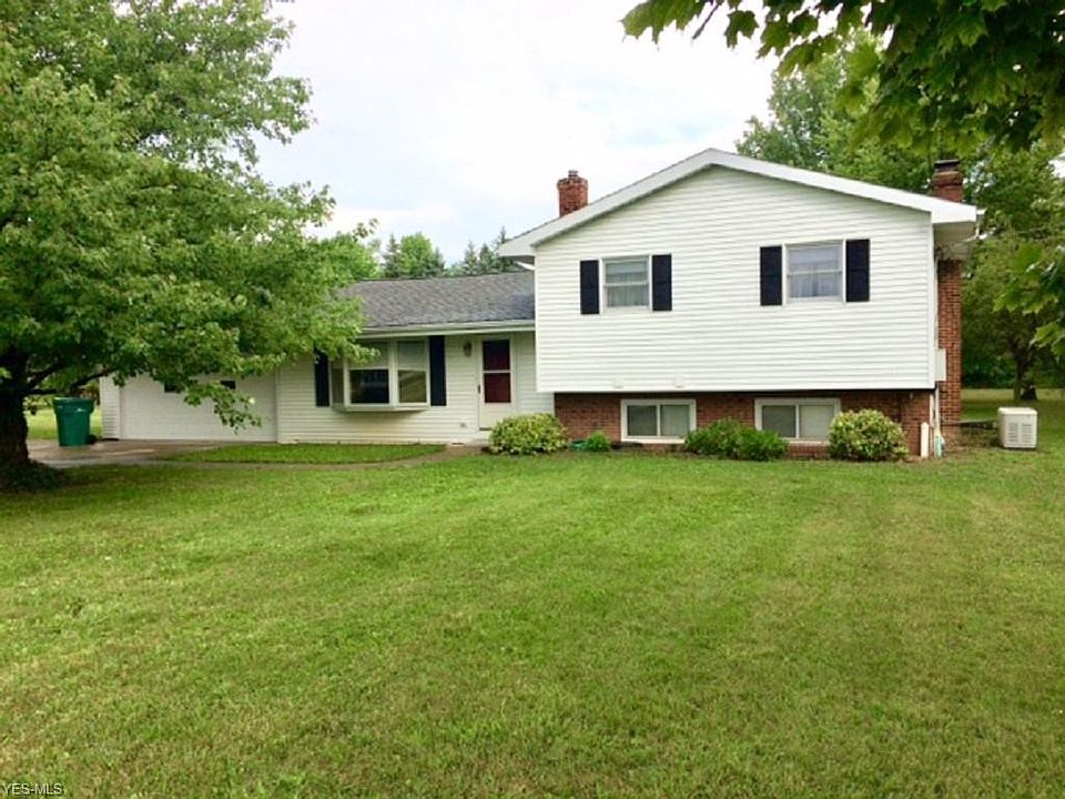 Welcome home to this spacious Chesterland home in West Geauga School system. This split level design boasts an updated kitchen with beautiful cherry cabinets, granite countertops, breakfast bar, with a skylight over the dining area. There are three bedrooms upstairs and a full bath, vaulted living room ceiling and a bay window, family room with a brick hearth and gas fireplace, topped with a cool reclaimed beam for a mantle. There is an adjacent room for office or hobbies. Full bath on family room level. Hardwood floors in bedrooms under carpet, and in living and dining rooms. Wonderful sunroom on back of house offers a great backyard view and a gas stove heater for four season enjoyment. Laundry room, workshop and storage are just off the garage, so don't miss it! Beautiful, level property for enjoyment, and ease of mowing. Fully automated generator included to directly power entire home quickly if there is a power outage. There is a footer to the west side of garage for additional building or carport. Carpets were just cleaned, please remove shoes or wear booties available at the door.