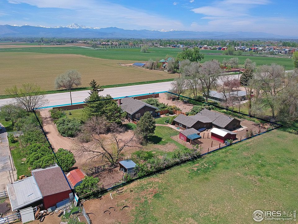 Wonderful country living on unique "Gentleman's Farm." Panoramic view of the front range, peaceful backyard deck. Several outbuildings include chicken coop, shed, and a large building for studio, game/gathering room. Beautiful landscape, ample parking area, and a private Labyrinth for walking meditation. Lovely house has open floor plan & large windows for natural light in every room. Upgraded kitchen with stainless appliances, granite countertops, white cabinets. Beautiful bamboo flooring throughout. Large master bedroom w/walk-in closet. Distinctive built-ins add charm & character.