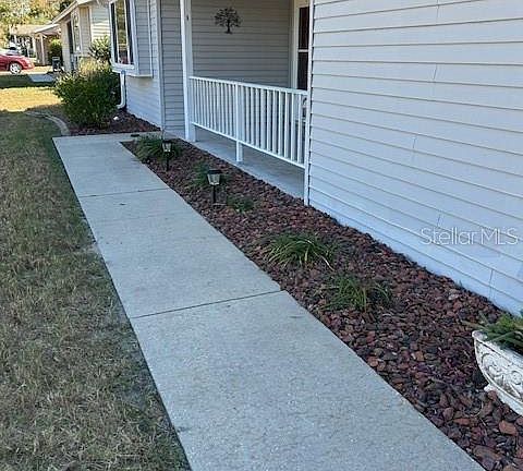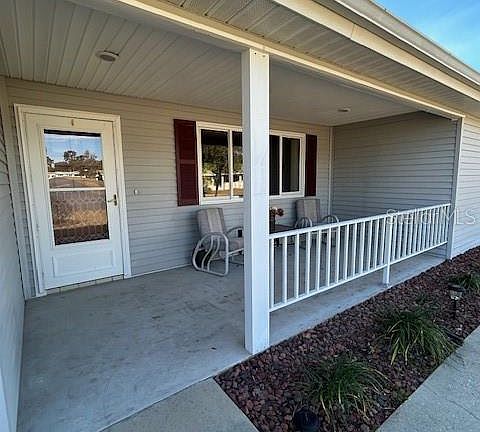 Welcome to Oak Run, a 55+ community with lots of amenities. This 2 bedroom Magnolia split floor plan home,is a very popular model home in Oak Run.The house is neat, clean and move-in ready! The home has nice landscaping and features a covered front porch. As you enter the home you notice the spacius living room/dining has no carpet! There is laminate floor throughout the home and tile floors in the bathrooms and kitchen. The updated kitchen has granite countertops, a view of the backyard and a pass-through window to the dining area. Both bedrooms, located on each side of the home, have their own ensuite bathroom with double sinks. Off the living room/dining room is a lanai/family room,under heat and air, glass windows and a view of the fenced in backyard. The back of the home has a cement patio great for entertaining or grilling. Off the Lanai/Family room is the attached garage with laundry area. The north/south orientation of the home allows for sun all day long. The roof and electrical panel were just updated 2025. Oak Run is a 55+ gated community, with 6 pools, 5 spas, 2 fitness centers, Billiard and Card room, Dog Park, Restaurant, Golf Course and Driving Range. Close to Medical Faciities, Restaurants and shopping.