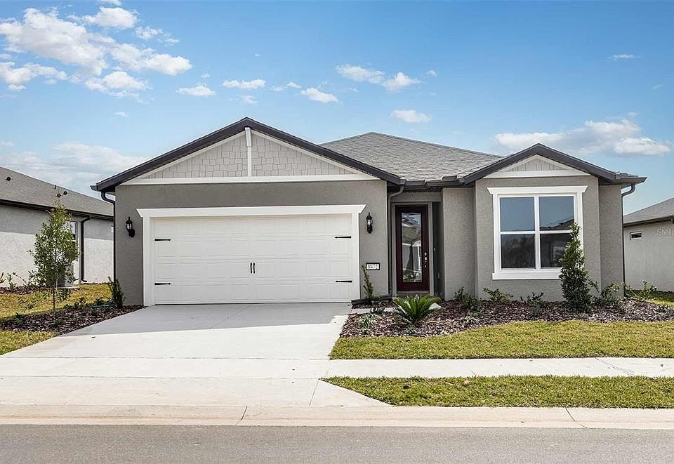 One or more photo(s) has been virtually staged. New Construction Home Available NOW! Enjoy all the benefits of a new construction home in the serene setting of Ocala, FL's horse country, with an age-restricted, fully amenitized lifestyle at Del Webb Stone Creek. This is the active adult community you've been looking for, with amenities that include an 18-hole championship golf course, a full restaurant and bar, indoor and outdoor pools, sports courts, and so much more. Our sprawling amenities, clubs, and classes will fill your retirement days with activities to make new friends and memories. This popular Cresswind floor plan, with an open-concept home design, has all the upgraded finishes you've been looking for. The designer kitchen showcases a spacious center island with a large, single-bowl sink, white cabinets, quartz countertops with a 3”x6” white subway tiled backsplash, and Whirlpool stainless steel appliances, including a range, microwave, and dishwasher. The bathrooms have matching white cabinets, quartz countertops, comfort height commodes, and dual sinks in the Owner's bath. There is 12”x24” tiled flooring in the main living areas, baths, and laundry room, and stain-resistant carpet in the bedrooms. This home also features a convenient laundry room, an extended covered lanai, a large kitchen pantry and a 2-car garage with a utility sink and upgraded 4’ extension. Additional upgrades include 4 LED downlights in the gathering room, pendant prewiring in the kitchen, upgraded door hardware, and a Smart Home technology package with a video doorbell.