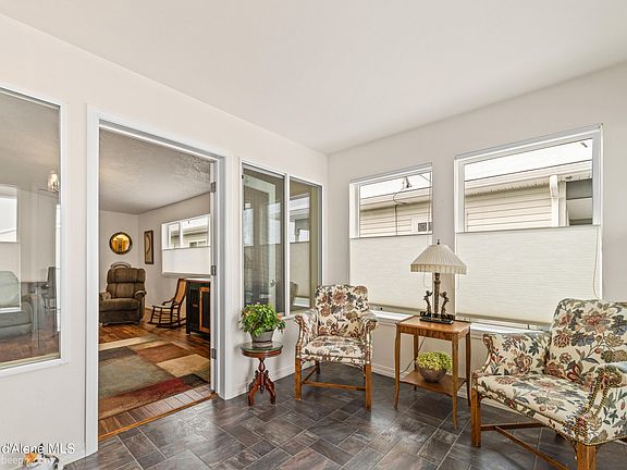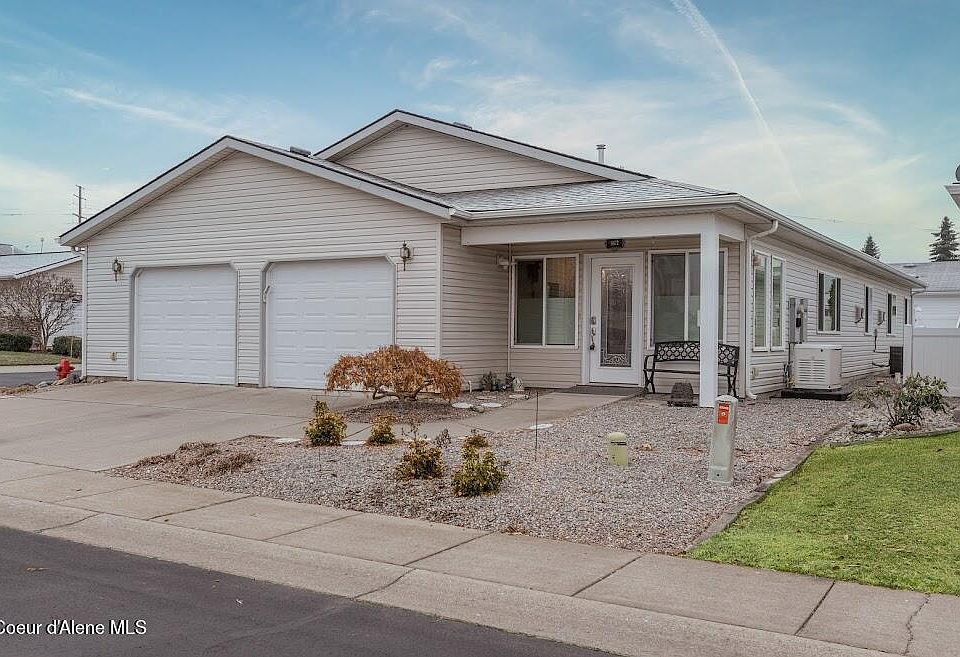 Welcome to this spacious 3 bed/2 bath, 2195 sq. ft. home with a 2 oversized car garage with a half bathroom in Golden Spike Estates in Rathdrum, Idaho . Community fee is $1,100./month-PREPAID BY THE SELLER FOR THE 1ST YEAR AT CLOSING. You will enjoy entering the arctic entry room with 4 large windows to enjoy this sitting area. Open floor plan with new acacia hardwood flooring, gas wall fireplace, new double pane windows and lighting. The dining area opens up to the expansive kitchen including, pantry, Birdseye maple cabinets w/under the cabinets lighting, granite countertops, new lighting, stainless steel appliance (included), gas cooktop range, wall oven w/microwave & built in desk. The laundry room includes a sink, closet. Down the hall is a full bathroom with a bathtub shower combo. First bedroom includes a built-in craft table, large closet and a door that leads to the 39' X 5'3' sunroom to enjoy. The 39' fenced in patio is great for your including a sun setter retractable awning for shade in the sunny days. The second bedroom has 2 large closets and a door that leads to the sun room. The main en-suite has a wall gas fireplace, large walk-in closet with plenty of shelving, bathroom includes a spacious bathroom with 2 vanity's. The oversized 2 car garage has a 1/2 bathroom, work benches and shelving for your storage needs. This home is conveniently located close to the club house with an indoor swimming pool with weekly activities, clubhouse is currently under renovation this winter. This home has been renovated with many upgrades. Centrally located to Post Falls and Rathdrum and approximately 1 hour to the Spokane Airport.