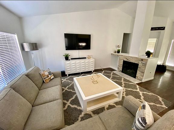 Bedroom 1 (primary) - King size bed, dresser, two nightstands, TV, master bathroom with walk-in closet, shower and dual vanity; Bedroom 2 - Full size futon, closet, dresser, TV; Bedroom 3 - Two twin size beds, closet, dresser, nightstand, TV. Second bathroom has tub/shower combo. Living Room - Queen size sofa bed sectional, coffee table, TV stand, gas fireplace, TV. Full kitchen with basic appliances: refrigerator, gas stove, microwave, dishwasher. Kitchen also has dishware, cookware, keurig coffee maker, toaster, blender and air fryer. Laundry Room - Full size washer and dryer. House entry from garage provides safe and secure access. Second refrigerator also available in garage.