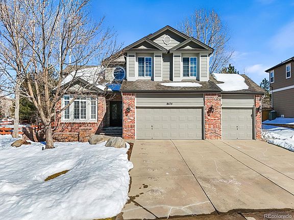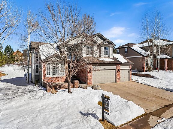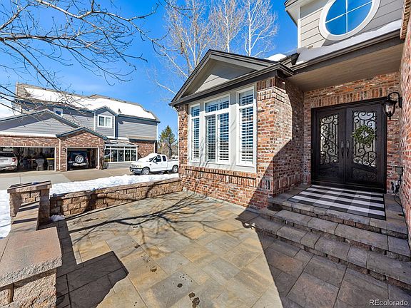 Situated in the desirable Hidden Pointe neighborhood of Castle Pines, this home strikes a perfect balance between elegance + comfort. As you approach, the welcoming front patio, crafted with beautiful pavers and automatic lighting, invites you inside through a striking custom steel front door with glass panels that enhance the home with fresh air and natural light. Inside, the foyer presents a beautiful staircase + plenty of windows with plantation shutters, creating a light-filled and inviting space. The main floor includes a variety of rooms to fit every need, including a formal living room, dining room, cozy home office, powder room, + a large family room that opens into a well-appointed kitchen. The kitchen boasts high-quality cabinets, a large island, granite countertops, stainless steel appliances, and easy access to the peaceful backyard, perfect for enjoying the outdoors. Upstairs, the primary suite offers a peaceful retreat with a luxurious five-piece bathroom + a custom-organized walk-in closet. You will find 3 additional guest bedrooms and newly remodeled guest bath. The basement adds valuable living space with a large family room, bedroom, bonus room, and a full bathroom + plenty of storage. The backyard features a peaceful stream water feature, a well maintained lawn, + a paver patio, creating a lovely setting for relaxation or entertainment. An invisible fence is also in place for pet safety. The home has been thoughtfully updated, including new flooring, fresh paint inside and out, and an upgraded HVAC system with a humidifier and air conditioning. Located on a quiet cul-de-sac close to open spaces, walking paths, and Coyote Ridge Park, which offers a variety of outdoor activities and community events, this home is a serene retreat. Enjoy comfortable living in a location that blends tranquility with the convenience of community amenities. This property offers a unique opportunity to make it your next home. You will love living here!