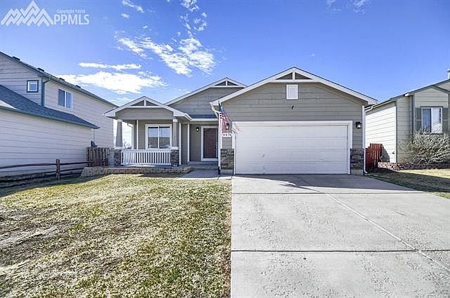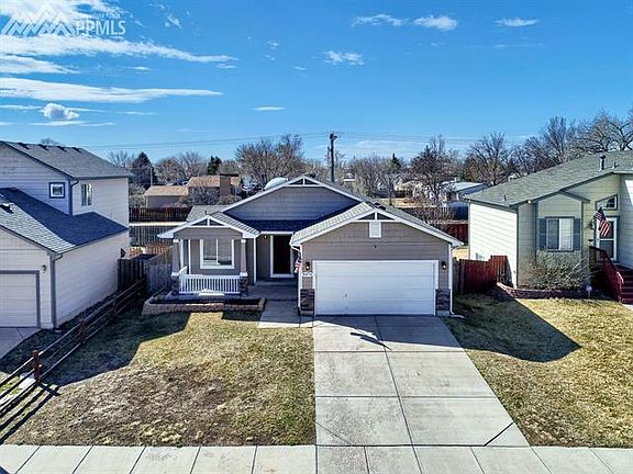 Open and spacious main level living rancher close to schools, shopping center, fire station and Fort Carson. Living Great Room greets you with wood floors, fireplace and built ins. Spacious kitchen with Oak cabinets and breakfast bar offer ease of use for every day use. Lots of natural light with vaulted ceilings and skylights compliment the open floor plan. Master bath with garden tub and spacious bedrooms. Fully finished carpeted basement, mirrored closets and spacious backyard. Great location!