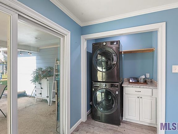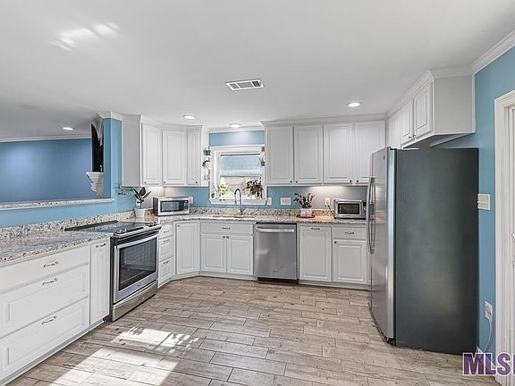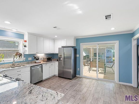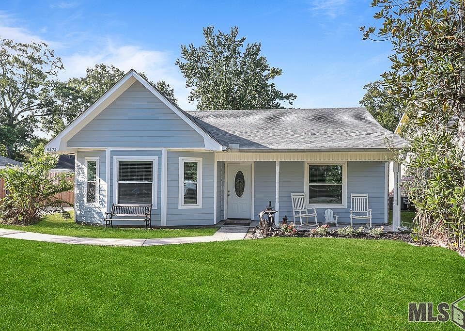 Welcome to this charming 3 bedroom, 2 bathroom home located in the heart of Denham Springs! This house has the appeal of a Victorian cottage on the outside, with a fresh and modern feel on the inside! As you step inside, you'll notice the beautiful wood look tile flooring, crown molding, and granite countertop. The kitchen is updated with stainless steel appliances, a pot-filler faucet, and plenty of counter space to prepare your favorite meals. Dim the lights and cozy up by the fireplace in the spacious living area, complete with a custom wood mantle. You will love to entertain in the dining room with the circle bay windows creating a bright and inviting space. The primary bedroom is a true retreat, boasting a generously sized en suite bathroom. Treat yourself to a spa-like experience in the luxury tile shower with rainfall shower head. Outside, you'll find rear carport parking and a covered patio that is perfect for enjoying the outdoors. There is also an oversized storage room for all your storage needs. The fully fenced yard provides privacy for your vehicles and has a gate for added convenience. This home has many recent updates, including a newer roof and AC unit, giving you peace of mind. Located in a quiet neighborhood just minutes away from the Antique Village, this home offers a perfect location in town, close to everything you need. And the cherry on top? No HOA fees! Don't miss out on this incredible opportunity to make this home yours!