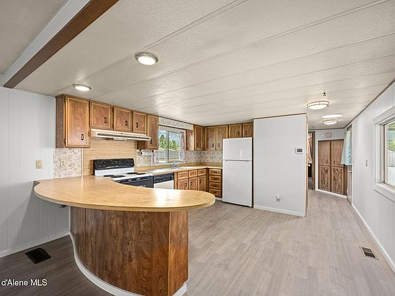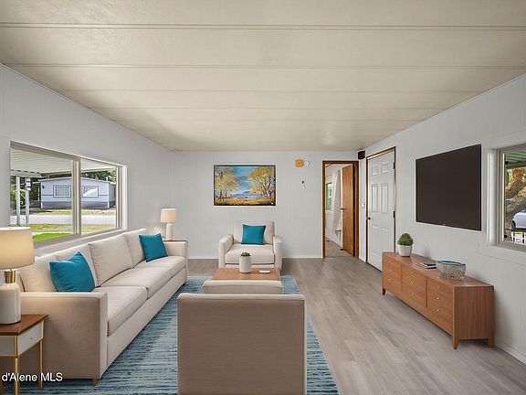 55+ Community in Hayden! Updated single wide with new Laminate in the Main Living Areas and Carpet in the Bedrooms. New paint throughout. New Mini Split for Heating and Cooling and Furnace. Big open kitchen with tons of counter space. Large Breakfast bar and Peninsula for added seating and space. 2 Large Master Suites with Master Baths! Built in Storage. Tons of natural light and bright and airy feel in this big open floor plan. Updated Vinyl Windows. Large covered front porch and back porch. Covered 1 Car Carport and Additional parking in driveway. Garden Shed and Raised Garden Beds ready for your garden. This park offers the lowest monthly rates in the area and allows renting of your units. Great central location with easy access to dining, medical, transportation and Beautiful Hayden Lake. Quiet streets and friendly Neighborhood