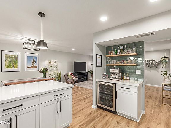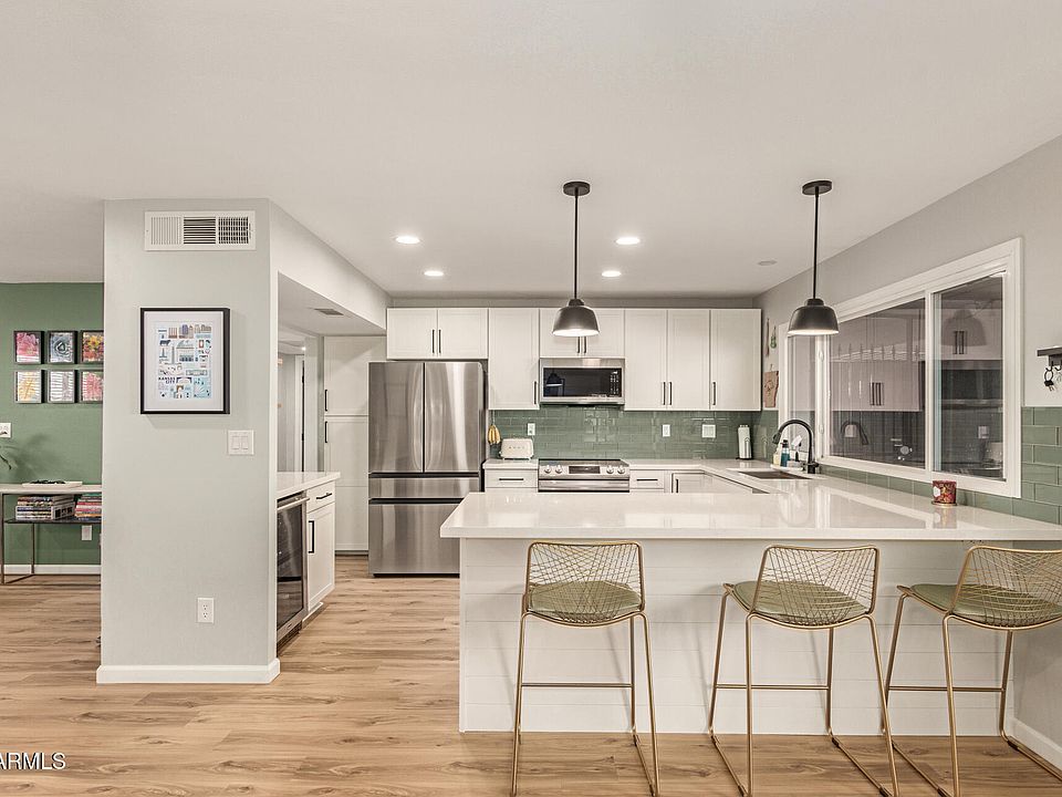 This beautiful 2 bedroom, 2 bathroom fully updated condo offers modern finishes and a prime location near Old Town Scottsdale. Eat in kitchen features quartz countertops, stainless steel appliances, wine fridge with bar, tile backsplash, and breakfast bar. Oversized primary suite features walk in tile shower and walk in closet. Secondary bathroom with tile shower, soaking tub, upgraded vanity with quartz countertops. Enjoy resort style amenities in a well maintained community, with shopping, dining, and entertainment just minutes away. Move-in ready and waiting for you! Spacious patio with Saltillo tile and cafe lights HVAC unit replaced in 2020. June 2022 new flooring throughout entire home. Water softener installed April 2024. See documents tab for list of all upgrades.