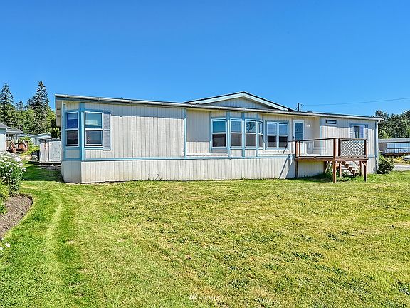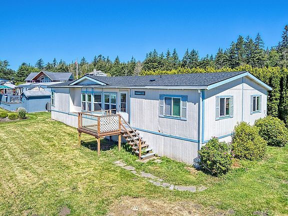 VIEWS, LOCATION! Almost on top of the hill. New exterior paint, Open spacious layout in 1782 sq ft, 3 bedrooms, 2 baths, family room, sliding door off dining room, pantry. Lots of windows and 2 skylights making this a very bright and airy home. High up above the ground with 2 decks, 2 ceiling fans, vaulted ceiling, beautiful mouldings on ceiling, huge ensuite bathroom with make-up table. Enjoy the spectacular views of Birch Bay, Serene water, State Park, Islands, Mt. Baker. Room to build a garage. Mins to the Canadian border, Blaine, Bellingham, beach.