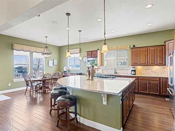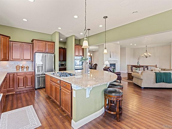 If you have been waiting for a sprawling ranch style home with finished walkout basement on a large view filled lot backing to a greenbelt...YOUR WAIT IS OVER! This gorgeous Leyden Ranch home is located on a 15,000 sq ft corner lot that features a large stamped concrete patio with a built-in gas grill. The upper level has a covered deck that boasts views of the foothills as well as Downtown Denver. The yard backs to a beautiful greenbelt and sides to a quiet neighborhood park. Step inside and discover tall ceilings and an open floorplan that is ideal for entertaining on a large or more intimate scale in either the formal dining room or breakfast room. Sitting in the spacious great room will be peaceful as you enjoy the warmth of a cozy fire and the city skylights through the many back windows. The chef's kitchen features a large island with an amazing amount of work-space w/ granite counters. There are newer GE Cafe stainless appliances that go beautifully with the handsome staggered cherry cabinets, plus an unbelievable amount of storage in the walk-in pantry. The primary suite is separate from the secondary bedrooms and office and has a door that opens onto the covered patio. The 5-piece bath is beautifully appointed w/ lots of granite counters. A pleasant surprise are the $17,000 California Closet's inserts. Completing this floor are 2 spare bedrooms, 2 additional bathrooms, a study and a generous laundry room. Hardwood floors cover everything except the bedrooms and bathrooms. The fully finished basement is equally as stunning and offers a large wet bar with beautiful quartz counters, a walk-in wine cellar, a 2nd master bedroom and bath, as well as so much space for throwing parties on the hickory wood floors plus rooms for working out, a craft area and plenty of storage! Owned Solar panels for energy efficiency! Convenient commute to Boulder & Downtown Denver plus just 15 minutes to the foothills. Welcome to your next GREAT HOME!!!