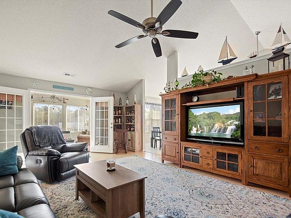 Gorgeous 3 bedroom 2 bath home sitting on almost a quarter acre overlooking the pond in Osprey Woods of Tern Hall. This great home features front and back porches, a finished garage, and a Carolina Room! The spacious living room has a high vaulted ceiling with a fan and a built-in bookcase with a hidden Murphy bed in it for extra sleeping space for guests! French doors off the living room lead you to the amazing Carolina Room that has tons of windows that flood the room with natural light and provide great views of the pond! In the kitchen you will find stainless steel appliances, vaulted ceiling with a fan, tile floors, a coffee bar, breakfast bar, and an adjacent dining area! The large master suite has a vaulted ceiling with a fan, a walk-in closet, and ensuite bath with a whirlpool tub, walk-in shower, and a long vanity with extra storage. There are two additional good sized bedrooms each with their own closets, one even has a vaulted ceiling and arched topped window. The second full bath has a shower/tub combo and nice vanity with storage. In the backyard there is a patio off the Carolina Room and a back porch overlooking the pond! Located off of HWY 707 with easy access to HWY 31 makes traveling across the Grand Strand a breeze! Less than 10 miles from Market Common or The Murrells Inlet MarshWalk! Come see this beautiful home in the low HOA fee community of Osprey Woods today!