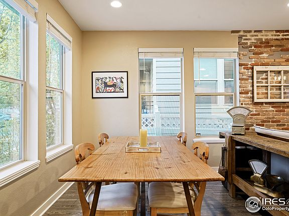Generous natural light beams throughout this Arista townhome. Enter into an open floorplan flowing w/ handsome flooring and a serene color palette. Lofty ten-foot ceilings expand the scale of the main level further. A spacious living area w/ outdoor connectivity extends into a bright dining area offering seamless flow for entertaining. Sliding glass doors open to reveal a fenced-in side patio - the perfect space to enjoy grilling or outdoor dining. Grounded by a center island w/ seating, a large kitchen showcases stainless steel appliances and abundant cabinetry. A staircase w/ new vinyl plank flooring ascends to a flexible upper-level loft ideal for a home office or seating area. One of three sizable bedrooms, a primary suite is complemented by a five-piece bath w/ updated fixtures. Ample storage is found in an unfinished basement w/ endless possibilities for personalization. An ideal location affords close proximity to dining, shopping, public transportation and the 1stBank Center.