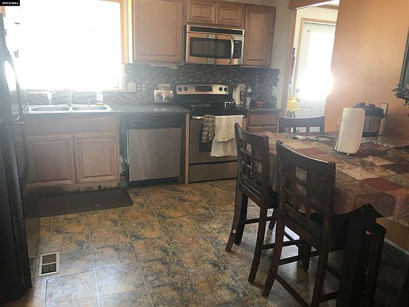 Stop paying rent and start building some equity with spectacular views of Thunder Mountain while you do it. This is your perfect starter home. Double wide, 3 bedroom, 2 bathroom manufactured home complete with a carport, storage shed and concrete pad. The roof is made of composition shingle and is only several years old. Windows updated in 2017, cabinets & stainless steel appliances updated in 2016 plus new trim and fascia. The sale of this manufactured home includes a front loading washer and dryer and is priced to sell. Available for showing with 24 hours notice. Financing can be found at True North Federal Credit Union.