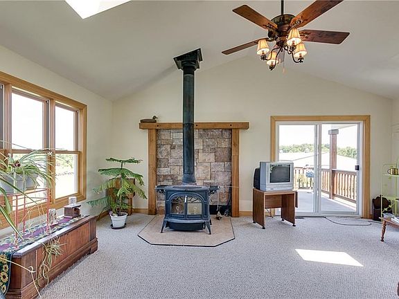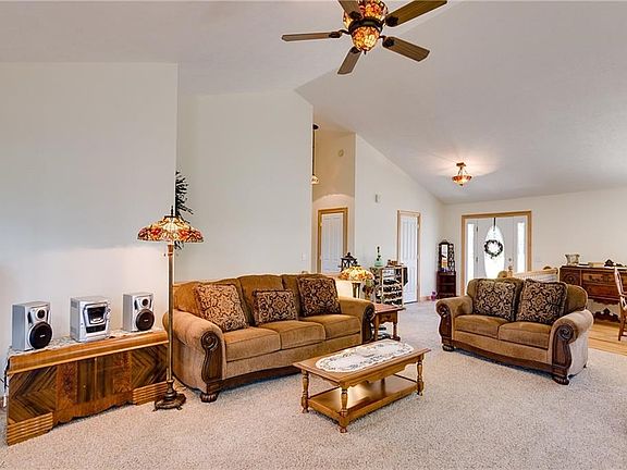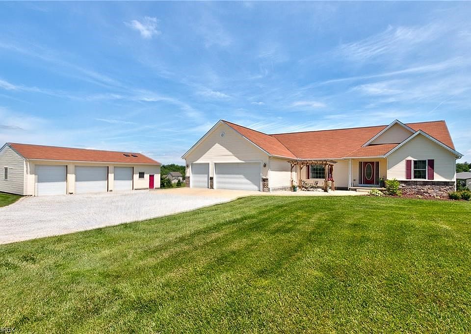 Lovely Open Concept Ranch On A Tree-Lined, 3+ Acre Lot! 3 Bedrooms/3.5 Baths. Large master bedroom with his/hers closets including a walk-in and en-suite bathroom with jetted tub and stand up shower. Kitchen is well appointed with high-end appliances, hickory cabinetry, gas stove with down draft fan and a brand new dishwasher. French doors lead into the spacious 4-season Sun Room which boasts cathedral ceilings and a wood-burning stove. A Trex deck is right off the Sun Room so you can enjoy the expansive yard and watch the wildlife and horses in the pastures next door. 1300 sq ft, fully finished, walk-out basement includes a full bath with unique Victrolla vanity, concrete overlay topped bar with stools and concrete overlay flooring. 3 car attached garage also has concrete overlay flooring. 1500 Sq Ft, 3.5 car Pole Barn is large enough to accommodate an RV. Pole Barn is also outfitted with heat, water and electricity. The sellers are even gracious enough to leave their tractor behind for the new home owners, which includes a tiller, mower and back blade. Kitchen appliances stay. America's Preferred Home Warranty included for additional peace of mind. Fantastic property!