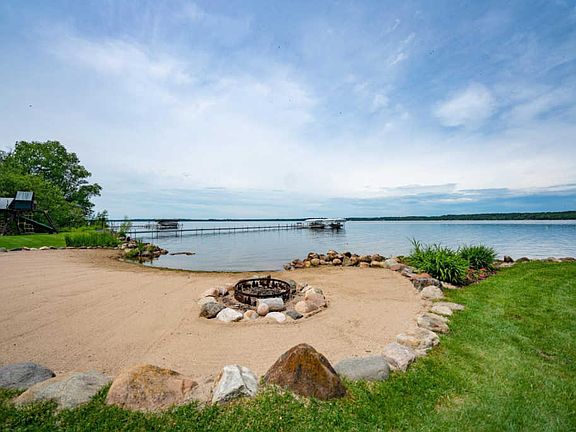 This incredible one-of-a-kind 8 bedroom 10 bath split stone wrapped estate home has 210 ft of west facing sand frontage on Whitefish Lake in the Big Whitefish Narrows Association. This turn-key 11,250 sq. ft. estate home boasts 3 levels of high end appointments, cherry hardwood floors, custom cabinetry, incredibly detailed woodwork, and custom audio system. Main floor features a spacious kitchen open to the breakfast area, stunning octagon family room, butlers pantry, luxurious master suite, formal dining room and an extensive workshop area. Finished walkout level features 5 bedroom suites, a 50s inspired recreational room and lakeside family room. Plenty of room to store your lake toys in the attached 2 stall garage and tuck under 3 stall garage. The excellent sand beach, lakeside fire pit, decks, patios, paver driveway and professionally landscaped yard complete this stunning estate. Start making your treasured family memories at this incredible Whitefish Chain estate.